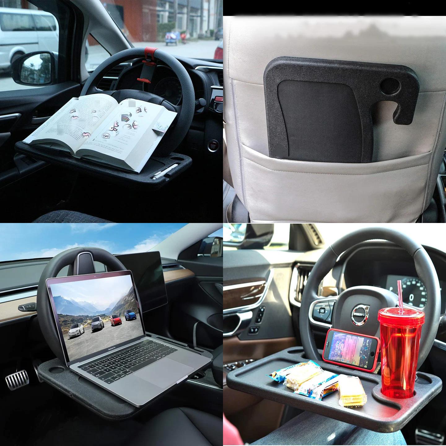 A clean, stable surface anytime you're stuck in the car. Whether you're eating, working, or freshening up, it turns your wheel into a desk, table, or vanity in seconds.